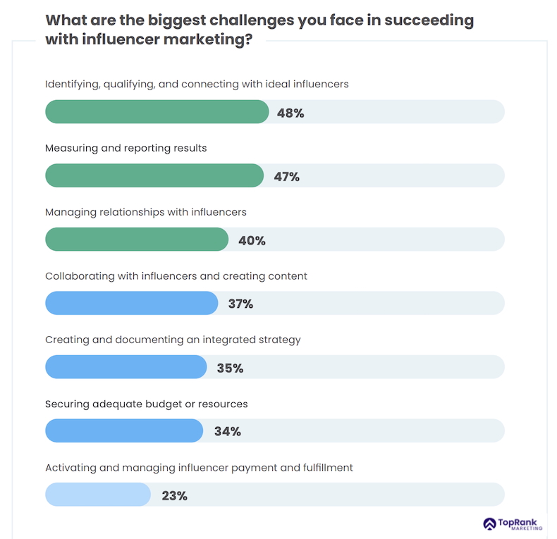 B2B marketers say the biggest challenges they face with their influencer marketing programs are identifying, qualifying, and connecting with the ideal influencers and measuring results.