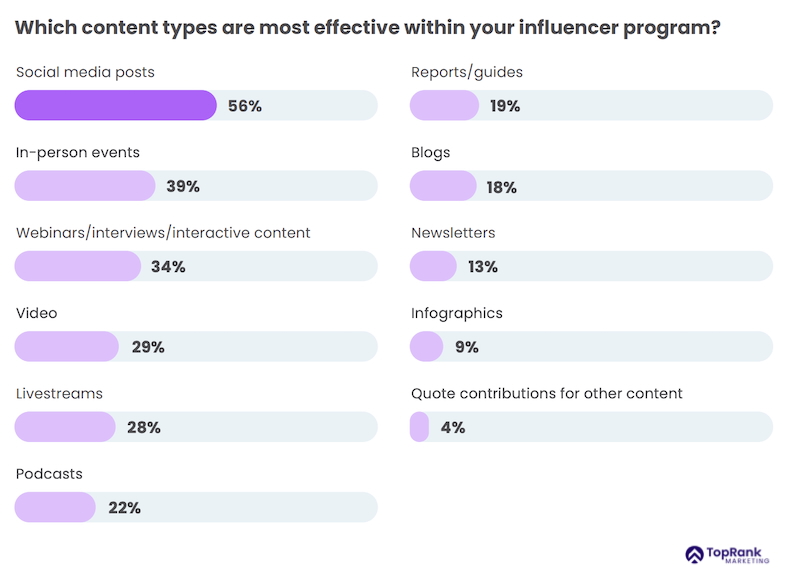 B2B marketers say the most effective types of influencer content are social media posts and in-person events.