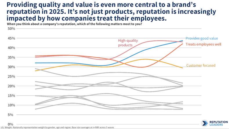 To find out, researchers at Reputation Leaders conducted a survey in February 2025 among a nationally representative group of 922 adults in the United States.