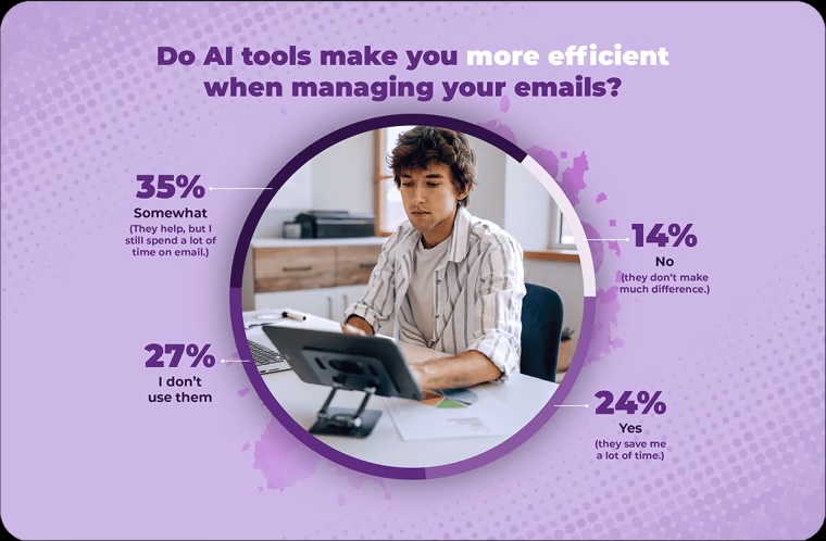 Some 35% of respondents say AI tools make email management somewhat more efficient.