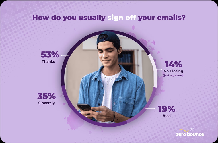 Most (53%) respondents say they sign off on their emails with a simple "Thanks."