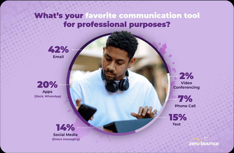 Some 42% of respondents say email is their favorite communication tool for professional purposes, compared with 20% who say apps, such as Slack, are their favorite.
