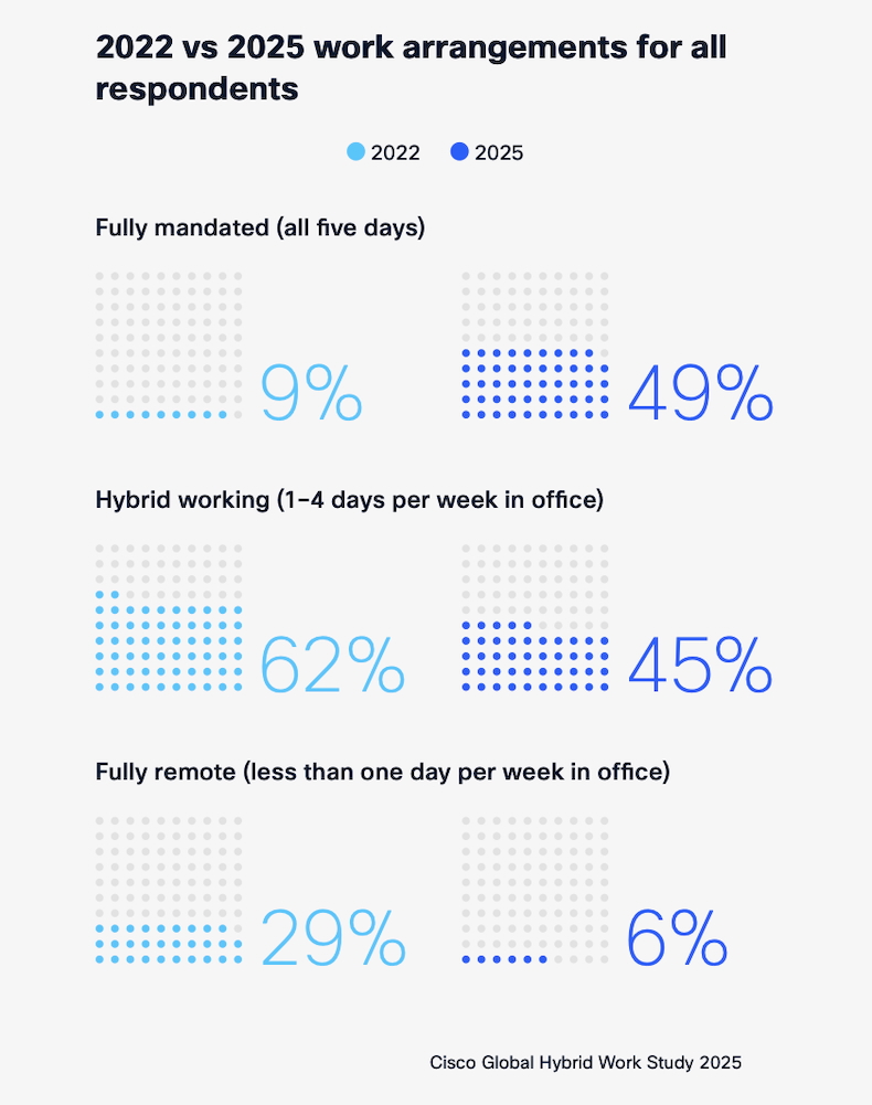 To find out, researchers at Cisco conducted a survey in April 2025 among 21,513 employers and employees in full-time roles across 21 markets globally.