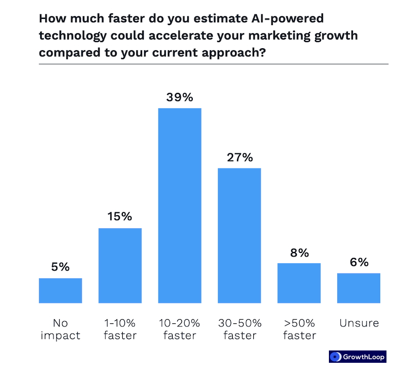 Some 89% of respondents say AI-powered technologies could accelerate their marketing growth, with nearly three-quarters (74%) saying they expect these tools could accelerate growth by more than 10%.