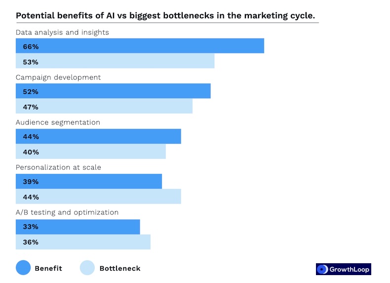 Marketers say AI can deliver benefits across a range of common marketing bottlenecks, including data and analytics, campaign development, and audience segmentation.