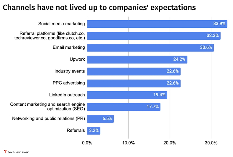 Respondents say the top channel that has not lived up to their expectations is social media marketing.