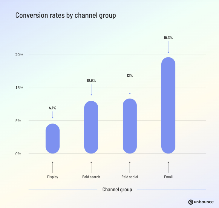 Visitors driven to website landing pages by email have the highest average conversion rate (19.3%), on average, the researchers found.