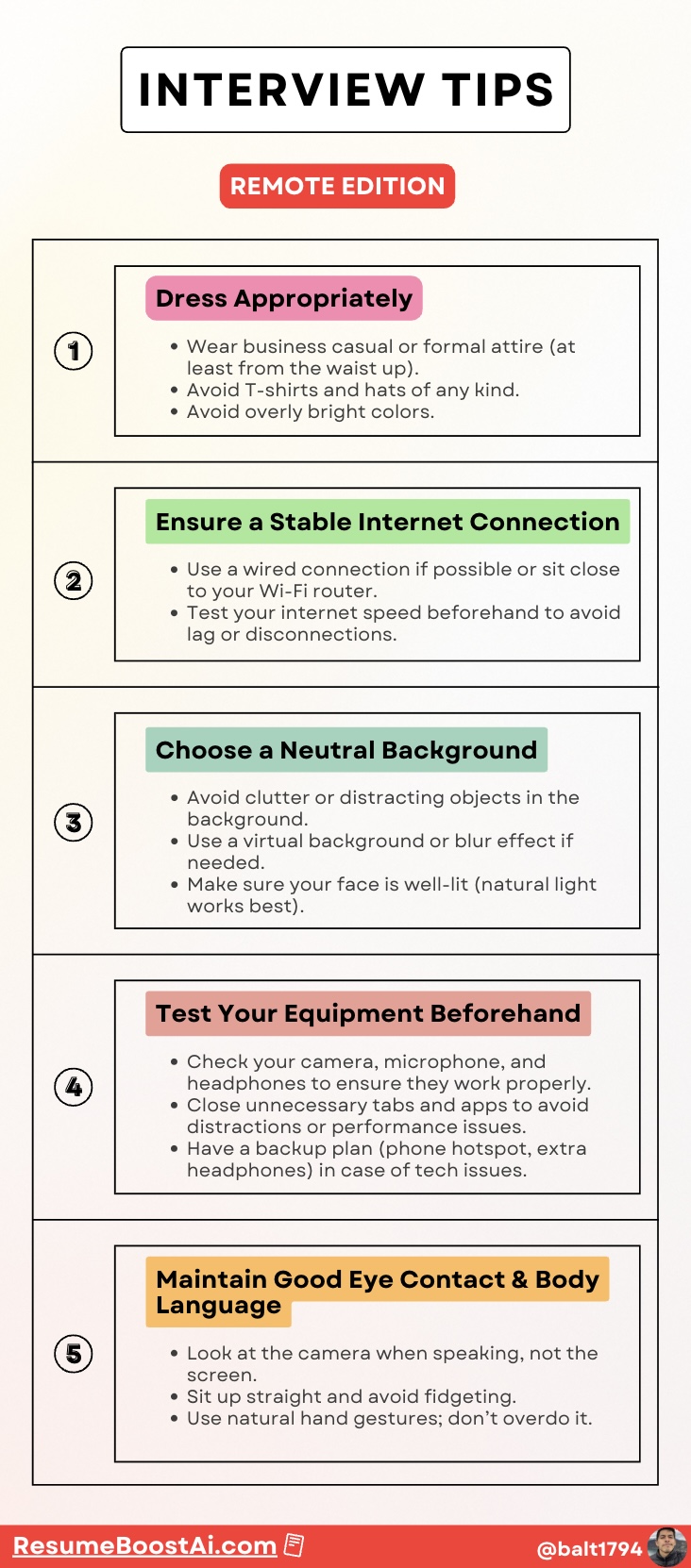 An infographic (below) from ResumeBoostAI covers how to set yourself up for success.