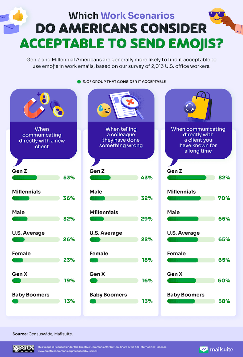 Is it OK to use emojis when communicating with a new client? With a client you've known for a long time? When telling a work colleague they have done something wrong?