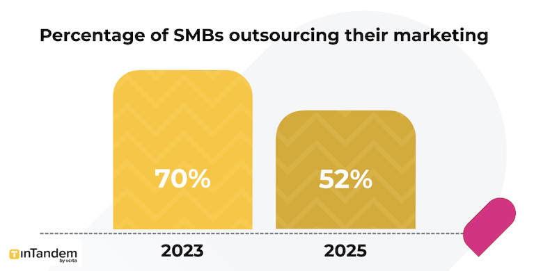 Some 52% of SMB owners say they outsource at least some of their marketing, down from 70% who said so in 2023.